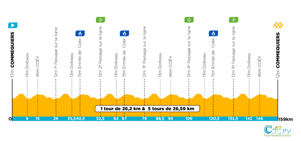 Le bouquet final – La 6e et dernière étape du Circuit des Plages Vendéennes 2026 se disputera autour de Commequiers, sur un circuit de 26,59 km passant par Saint-Maixent-sur-Vie et Coëx, à parcourir à plusieurs reprises. Comme la saison passée, cette étape de clôture se déroulera dans le Pays de Saint-Gilles, cadre traditionnel d’un final toujours très disputé. Sur un parcours rapide mais exigeant, la fatigue accumulée pèsera lourd et la moindre erreur pourra s’avérer décisive. L’an dernier, sur un tracé similaire, Emmanuel Houcou (Arkéa Développement) s’était imposé. Cette ultime manche promet une nouvelle fois une bataille intense pour conclure les Plages Vendéennes et sacrer les derniers vainqueurs de l’édition.