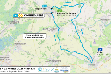 Usant et vallonné – L’étape 2025 reprend le tracé exigeant de l’an dernier dans la vallée de la Maine, autour de Montaigu-Vendée. Promesse d’une bataille épique sur les côtes et faux plats du parcours, cette journée sacrera un coureur solide, suivant les traces de Victor Papon, lauréat 2024 et désormais passé professionnel.