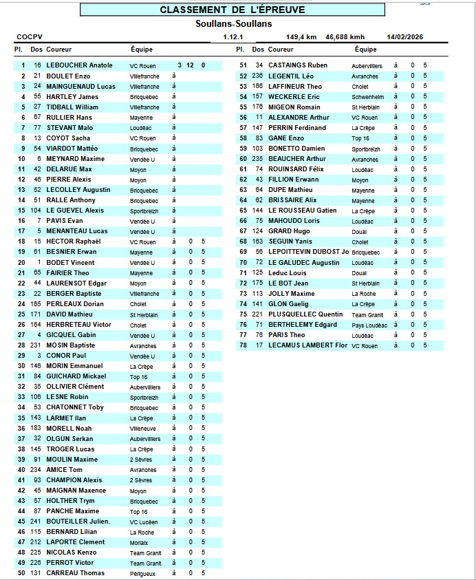 | Soullans | Anatole Leboucher | VC Rouen 76 |