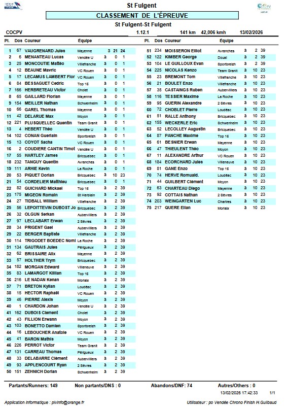 | St Fulgent | Timothée Coudiere Cantin | Vendée U Primo Energie |